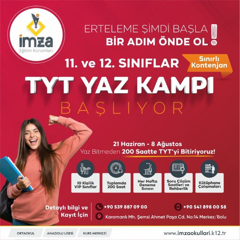 11. ve 12. sınıflara Özel TYT Yaz Kampı Başlıyor !